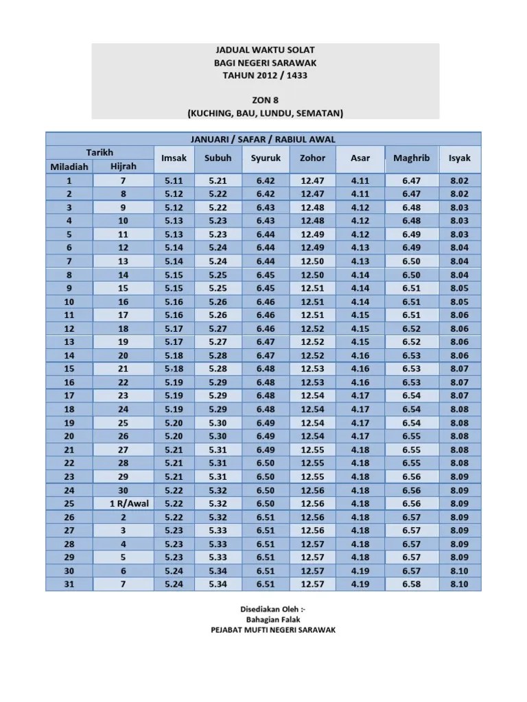 Jadual Waktu Solat Samarahan : Waktu Solat Zon 6 Sarawak Pdf